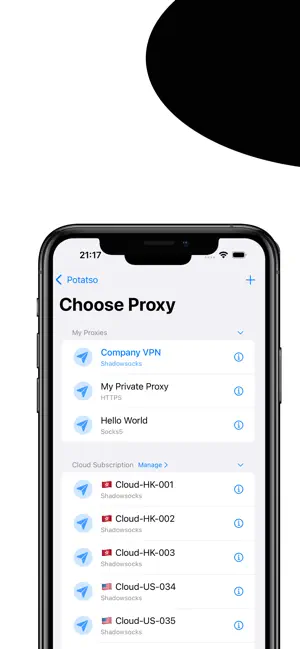Potatso is a powerful network tool which empowers your phone to have fully customized network environment. It's friendly for both beginners and power users. Potatso now supports Shadowsocks, ShadowsocksR, HTTP and Socks5 proxies. You can either setup one by yourself or buy from any proxy providers.Embedded smart rouing feature for Chinese users is super helpful which can cost less data in proxy servers and speed up domestic network traffic.=== Features ===- Custom proxy supports Shadowsocks, ShadowsocksR, HTTP and Socks5 - Run in the background sustainably without interrupting you- Both cellular and Wi-Fi are supported- Custom DNS support- Smart Routing for Chinese users === Privacy ===We respect your privacy so NO confidential data will be uploaded or shared with third parties=== Feedback ===Please contact on hi@potatso.com