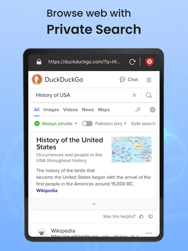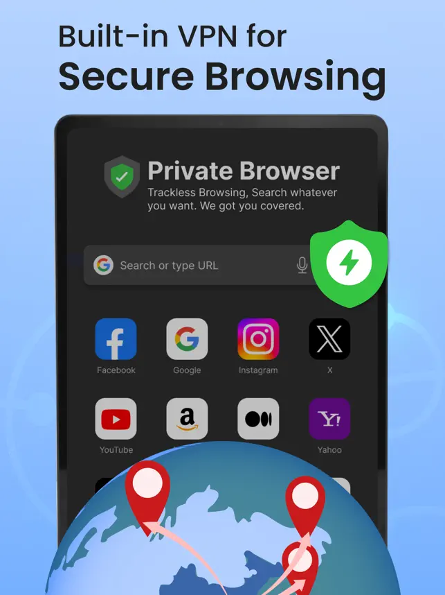 Stay protected with Private Browser’s in-built VPN, offering secure browsing and defense against online threats.Private Browser provides a secure browsing experience with safe internet surfing. It gives a default incognito screen with no tracking and history record. The user has complete control over his privacy as he can control whether to save bookmarks and history. Private Browser is not only for those looking for anonymous internet browsing but also for fast internet browser users. It has the ultimate user experience which gives complete interface customization to the user. You can set the theme according to your style.The Private Browser is equipped with:Incognito TabWhen you use incognito mode while browsing the internet, your device will not retain any evidence of your activity. A private browser will not keep track of the sites you have visited or saved your search history, nor will it remember your username or password.Bookmark your webpageA bookmark saves a website's URL for future reference in a safe browser. Bookmarks save user and browser time, especially when accessing a website's homepage or a specific section that is not the homepage. A bookmark is a tool that saves the location of a website for future reference.Search HistoryA user's web browsing history includes a list of web pages visited as well as page titles and visit times. Secure browser includes a private browsing mode in which browsing history is not recorded. This is to safeguard against third parties collecting browsing history for targeted advertising or other purposes.Find In PageIt can be difficult to locate a specific element on a long or complex web page, like finding a needle in a haystack. When you open the Private browser find-in page, simply click in the text input field and type in a word or phrase. The Safe browser will highlight all occurrences of your search query on the page, and you may cycle through them, up and down the page, using the arrows on the search bar. Share with friendsNow you can seamlessly share webpages with whoever you want through the private browser. Search EnginePrivate Browser brings you multiple search engines so you never have to stick with one. GoogleBingYahooWikipediaWolframAlphaEcosiaDuckDuckGoQwantMusic Player:Listen to your favorite music in complete privacy with our new music player integrated into our private browser. Our state-of-the-art encryption technology ensures that your listening history remains completely private, while our user-friendly interface and high-quality sound make for an unparalleled listening experience. Enjoy the best of both worlds with our music player in private browser.Using a Private Browser, you can take advantage of the latest web developments to keep yourself safe and secure while browsing the web. Thanks to Private Browsing Mode and Apple Intelligent Tracking Prevention (ITP), you can browse the web privately and anonymously.Privacy Policy:https://docs.google.com/document/d/1uKhXIVcDlFP7R12hiNgHNlCM4tz0b1MHFfYNEvZS7E0/edit?usp=sharingTerms & Conditions:https://docs.google.com/document/d/1-D6NgTS5GWwa1A4F3cJFt2tw0YcEReV3NGjr_x9FY3c/edit?usp=sharing