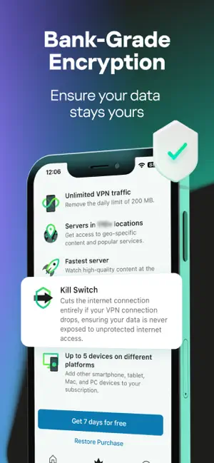Enhance your iPhone and iPad with Kaspersky VPN, the fastest VPN on the market! With top speeds, strong connections, and robust public Wi-Fi security, Kaspersky VPN is ideal for gaming, streaming, sharing large files, and keeping sensitive data safe from hackers in coffee shops, airports, and other public hotspots.#1 VPN for speed – now better than ever!Named the best-performing VPN by independent test lab AV-TEST in 2022, Kaspersky VPN has recently been re-evaluated with impressive results*. AV-TEST concluded, “Kaspersky VPN continues to improve its performance and demonstrates even higher results,” affirming its top-tier status in speed, security, and overall quality.THE SPEED YOU NEEDLag-free entertainmentWith no-limits traffic at super-fast speeds, you can stream shows, movies and music without delays wherever you are – even if you watch in HD!Blazing-fast servers in 85+ global locations Choose from over 85 worldwide locations and connect smoothly via our network of ultra-fast servers – boasting industry-high connection speeds of 10Gbps and above!Razor-Sharp GameplayGain a competitive edge with our special servers built to optimize your FPS and reaction times! Enjoy seamless connections with gamers worldwide, early access to global titles, and improved matchmaking. Plus, stream anonymously and avoid bandwidth throttling for uninterrupted gameplay.POWERFUL PRIVACY FEATURESSmart Hotspot SecurityOur service encrypts your emails, chats, and files, keeping them unreadable on unsecured networks. With Smart Protection, your VPN activates automatically when needed—like on public Wi-Fi—shielding your data from hotspot hackers.Data Leak ProtectionProtect your data from exposure with faultless leak resistance, proven by rigorous independent tests, and an essential Kill Switch that instantly cuts your internet connection if the VPN drops—ensuring your privacy is never compromised, not even for a second!IP MaskingBecause we disguise your IP address and geolocation, it’s impossible for anybody to read your personal data, even if you have an Apple account. Shield yourself from hackers, trackers and doxers – the smart way!Payment EncryptionEncrypt your shopping payments, bank transactions and money transfers so hackers and fraudsters can’t get their hands on your card details and financial data.Smart Device Data ProtectionBecause our VPN plugs into your home router, it secures the traffic transmitted between every device connected to it – including your smart TV, oven and door lock.ADAPTABLE TO YOUEasily connect to your most-used VPN locations by adding them to Favorites, switch to Dark Theme for comfortable night viewing and battery savings.*Award-winning performance is powered by Pango.Automatic Renewal• Payment will be charged to your Apple ID Account at confirmation of purchase.• Your subscription renews automatically unless the auto-renew is turned off at least 24 hours before the end of the current billing period.• You will be charged for auto-renewal within 24-hours prior to the end of your subscription period.• You can manage your subscription, including cancellation, via your App Store Account Settings.• You are welcome to read Kaspersky VPN Terms of Service and Privacy Policy here: https://www.kaspersky.com/products-and-services-privacy-policy.